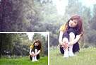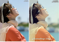 素材图片主色为黄绿色,调色的时候需要把绿色转为比较柔和的黄绿色,黄色转为橙红色,然后给图片局部增加一点高光,再美化一下人物即可。