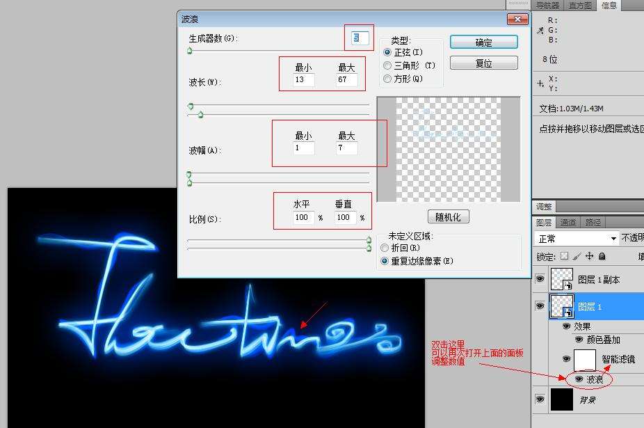 接下来,给这个图层添加一个波浪滤镜,此滤镜非彼滤镜~,作用于智能对象上的滤镜会叫什么