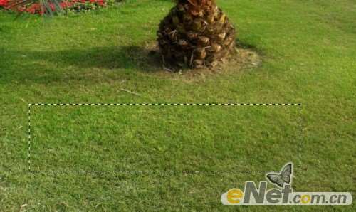 8、在文字图层按CTRL用鼠标点击略缩图调出文字路径,选择矩形工具,完成后在打开"土地"图片,将文字路径挪到土地上,选择复制。