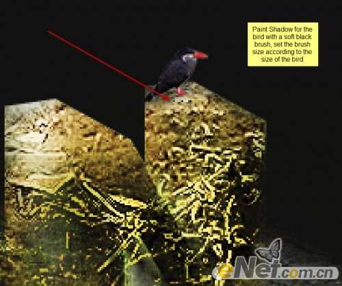 22、新建一个图层,在鸟的西面绘制黑色阴影,设置适当不透明度。