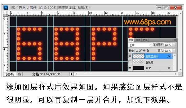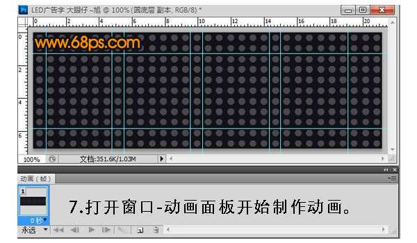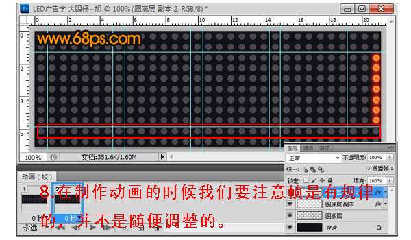 2、按照之前的教程:Photoshop制作简单的发光LED字,用动作命令开始复制圆(当然也可以用其它方法复制)。
