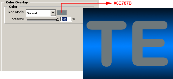 Select the TE PLASIC layer.选择德塑料层。 Go to the LAYER STYLES menu and select COLOR OVERLAY .到了层风格菜单,并选择彩色套印 。 Use a light gray color to simulate the environment reflection on the white letters.用浅灰色的颜色来模拟环境反射对白色字体。