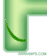 4.在最上面的图层上新建一个图层,按 Ctrl " " 把图层适当放大,在文字的下部位置用钢笔工具勾出叶子,然后调出选区填充深绿色颜色数值:2B8E00,效果如图9,再按 Ctrl Alt D 羽化,数值为2,再选择菜单: 选择 > 修改 > 收缩 数值也为1,填充浅绿色,颜色数值为:B4FF92,效果如图10