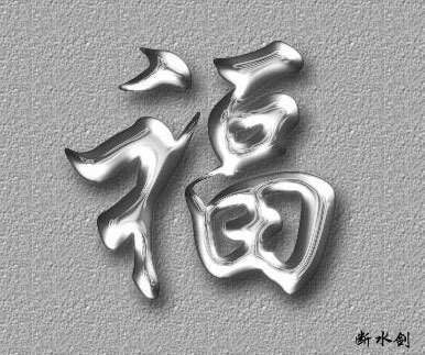 五、在最上方新建图层,按CTRL点击福字图层得到选区,填充50%灰,滤镜-素描-铬黄,参数默认,混合模式叠加,合并背景之外图层。