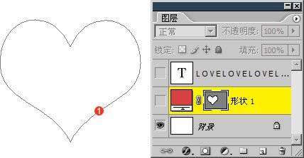 在进行下一步之前,要保证路径蒙版中的路径处于显示状态,方法是点击路径蒙版缩略图。会看到图像中的心形出现了一个外框,而图层调板中路径蒙版缩略图周围出现了一个细线框,如下右图。