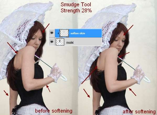 与强度约28%至沿着脸部,肩膀,手臂,背部避免了轮廓刷选择涂抹工具
