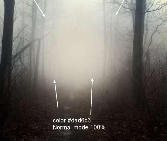 使模型层下新建一个图层。用软刷颜色# dad6c6画上图像的中心部分(雾部分)来创建这个更强的光效。改变模式为强光100 % (我关掉了模型层,让你看到更明显)