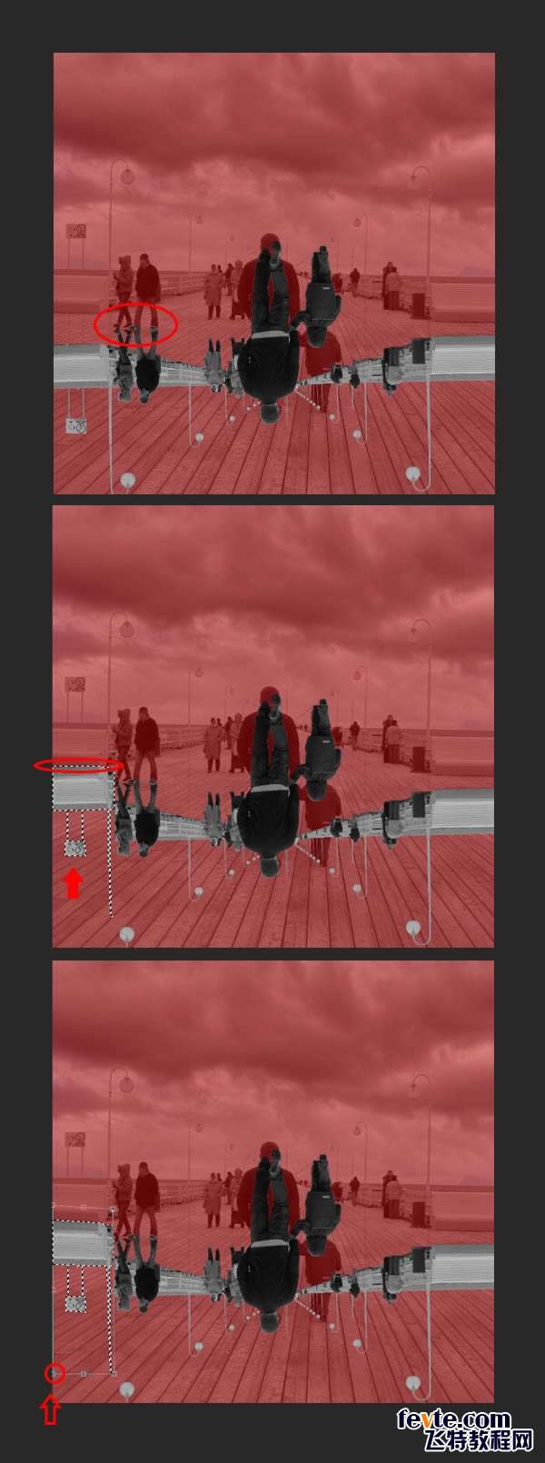 现在我们需要操作天空与地板之间的区域。为此,选择"Floor Mask"组的图层蒙版 (CTRL +单击),将选区反选(选择>反向),然后按CTRL + Alt +点击"Pier"集团的图层。选区选中,复制(CTRL + J)得到了特定的区域。命名为"Reflection"。