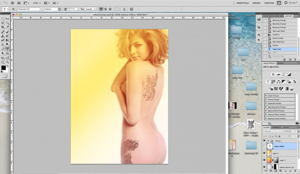 刺青合成的部分到此告一段落,接着我们来调整照片的颜色。