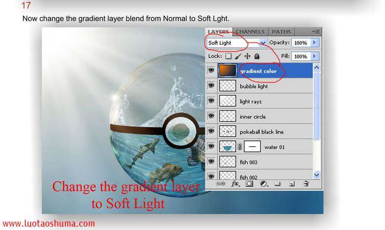 本篇教程通过不同的物品组合,通过后期奇妙的手法结合,会得到一个惊喜之作。教程将一些不相关的素材组合在一起,再经过后期的处理得到了一个奇妙的海底世界,很漂亮,喜欢的朋友快来学习一下吧!