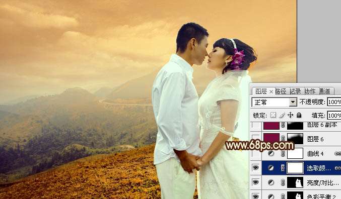 8、按Ctrl + J 把当前可选颜色调整图层复制一层,用黑色画笔把地面部分擦出来,效果如下图。