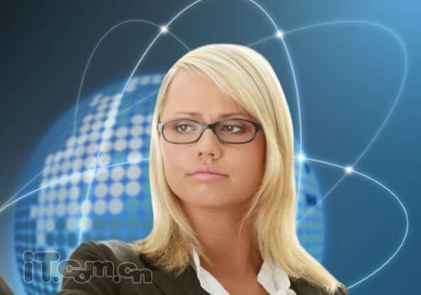 3、从网上下载一个年轻漂亮的办公室美女素材,然后把它复制到我们的图片中,如图所示。