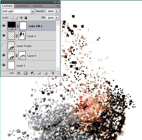 最后一步就是调整 作者觉得上方的小方块弄的太多了 他增加了个蒙版,把不需要的擦去,如下图