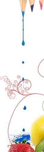 5、给曲线上颜色,选择曲线图层—在图层上单击右键—混合选项—渐变叠加。Tip: 在颜色的选取上作者是使用吸管工具(I),在铅笔一段选取一种颜色,在水果段选取一种颜色,这样做的效果可以使整体和谐,统一。