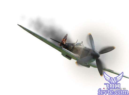 12、这步我们要做一些烟雾效果,烟雾要加在机尾后面,呈拖动状。如果觉得素材里的烟雾效果不太好,可以另找烟雾素材,或直接用滤镜>渲染>云彩,处理烟雾效果。要是有笔刷那最好了。