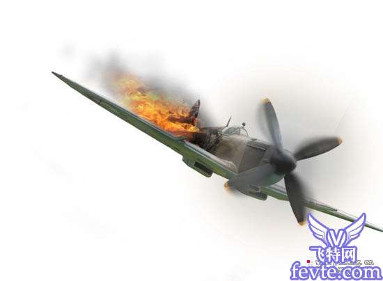 13、现在我们要处理机尾焚烧的效果,我们在素材上截取一块焚烧痕迹。然后放到机尾。