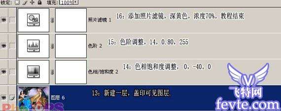 16、创建照片滤镜调整图层,参数设置:深黄色,浓度70%,确定后完成最终效果。下图为13-16步图层参照。