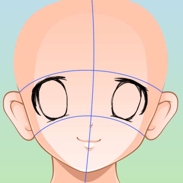 步骤3接下来,使用钢笔工具去画两个水平线(如图所示)。一个普通人的脸,鼻子会在横线的底部,眉毛会在横线的最顶端。当然动漫人物根据这个同样的结构,他们的大眼睛和小鼻子可以有些艺术效果。
