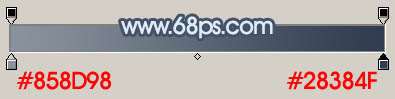 6、新建一个图层,按Ctrl + Alt + G 创建剪贴蒙版,然后在当前图层下面新建一个图层,用钢笔勾出底部高光选区,羽化6个像素后填充蓝灰色:#889CC2,如下图。