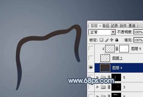 9、新建一个图层,用画笔描边做出一条曲线,颜色为淡红色,添加图层蒙版,把两端的过渡擦出来。