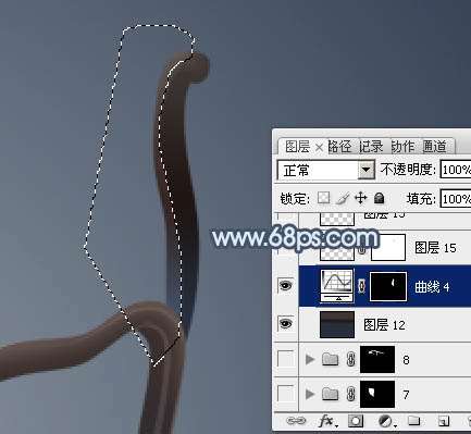 12、在背景图层上面新建一个组,用钢笔勾出图18所示的选区,给组添加图层蒙版。