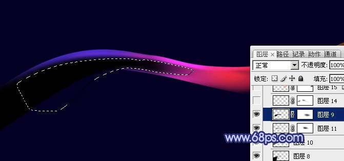15、在图层的最上面新建一个组,用钢笔勾出下图所示的选区,然后给组添加蒙版。