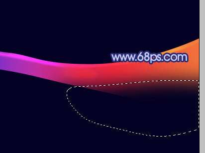 14、在背景图层上面新建一个图层,用钢笔勾出下图所示的选区,羽化2个像素后填充橙红色,如下图。