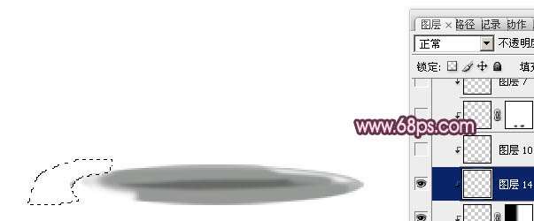 18、新建一个图层,用钢笔勾出下图所示的选区,羽化1个像素后填充暗灰色。