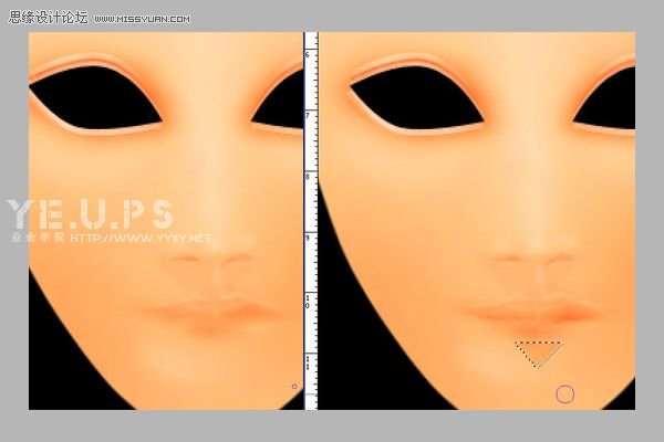 10、路径转化为选区,删除眼眶。水平翻转选区,移动到另一边删除眼眶。不能搞个独眼龙你说是吧~