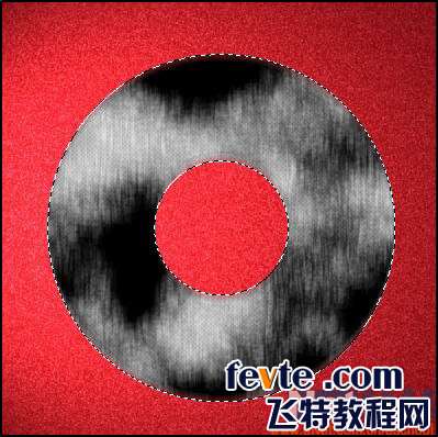 2、设置前景色为深红色,按Alt+Delete键填充背景层为深红色。选择菜单栏中的“滤镜”“杂色”“添加杂色”命令,弹出添加杂色对话框,设置数量为11,勾选高斯分布和单色。选择菜单栏中的“滤镜”“模糊”“高斯模糊”命令,在弹出的高斯模糊对话框中,设置半径为0.5像素。选择菜单栏中的“滤镜”“渲染”“光照效果”命令,作为背景。新建图层1,选择椭圆选框工具,然后在图像中建立一个正圆的选区,并填充白色色,保留选区,效果如图01所示。