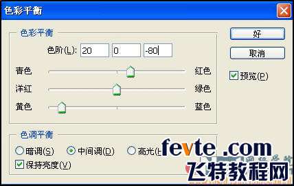 8、选择菜单栏中的“图像”“调整”“色彩平衡”命令,设置参数如图08所示。效果如图09所示。