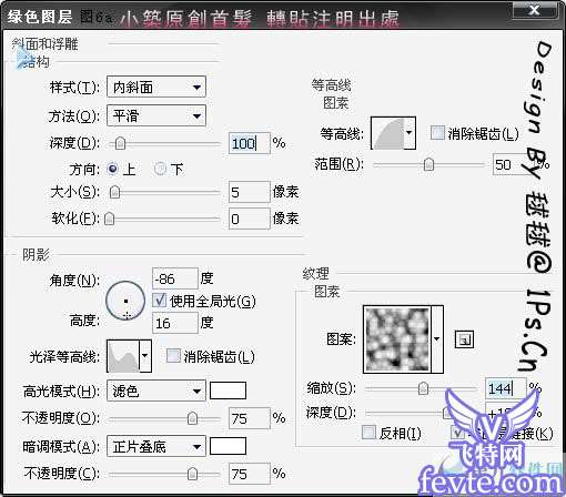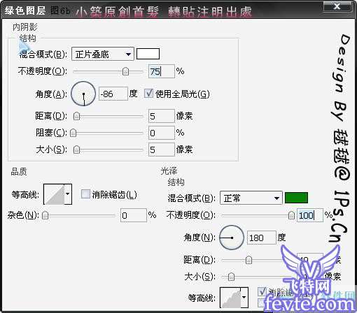 (图5a):接下来要仔细看哦,粉色环是需要设置,斜面和浮雕+光泽+颜色叠加。大家可以按照这样的顺序来绿色的也是如此,参考数值都有