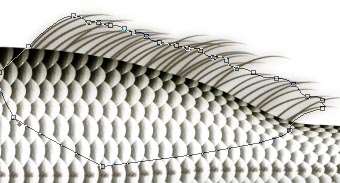 7、将复制的图层合并后,再复制一个合并后的图层,用鼠标左键拖拽到错开一个鳞片的位置,再按此方法复制若干次,再将所有图层(不包括背景层)合并,做出鱼身效果,如图6.2-7所示效果。
