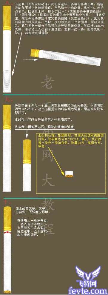 _ueditor_page_break_tag_四、将超出烟身部分的黑线擦除,用涂抹工具向烟嘴方向轻轻涂抹,涂抹工具用17象素柔边,强度60%即可,本层命名为“灼边”