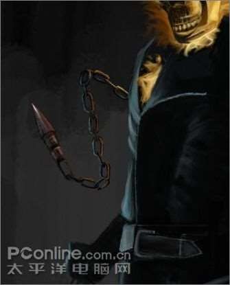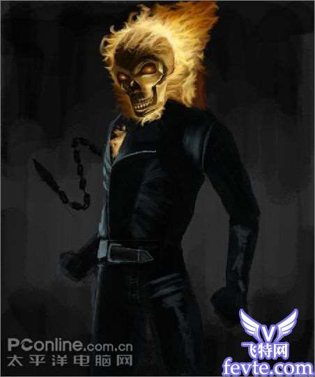 18. 对火焰和头部进行下修改,然后将死灵骑士复制一份,改为滤色,添加一个图层蒙板,只对头部和铁链部分起做用,完成。