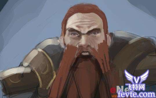 _ueditor_page_break_tag_3.在线稿层的下方再新建一个图层,进行大体的上色,使用褐色画出身上的布甲,然后画出橘红色的头发和大胡子,这一步只需要表达出大体的颜色就可以了,然后将这层和线稿层合并。