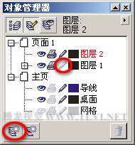 (2)执行"工具"→"对象管理器"命令,打开"对象管理器"泊坞窗,单击"图层1"前的笔形图标,将"图层1"锁定,然后再单击泊坞窗底部的"新建图层"命令,新建"图层2",如图4-47所示。