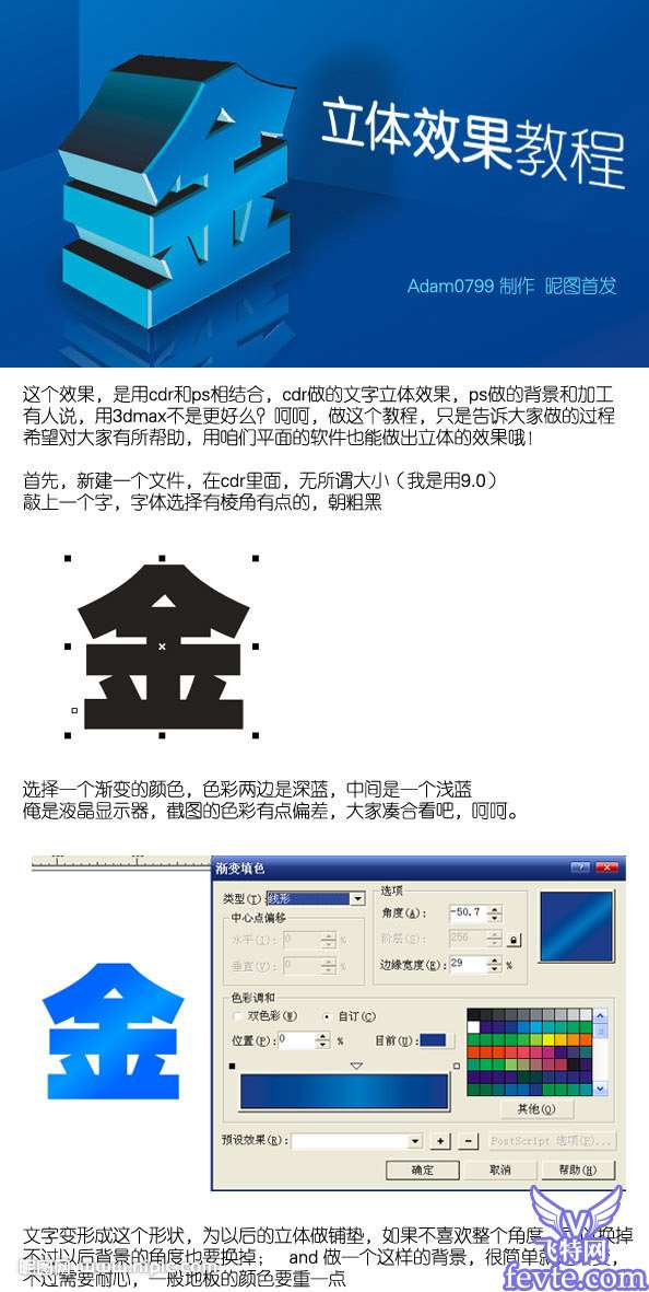 今天和大家分享一个使用CorelDRAW9和PS制作质感的立体字,制作过程难度一般,适合CDR新手学习。希望优图宝的朋友们喜欢这篇教程