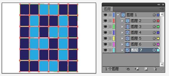 然后按住Alt整体移动并复制4个(Ctrl+D),并分别填充颜色,使图案组成相应数字