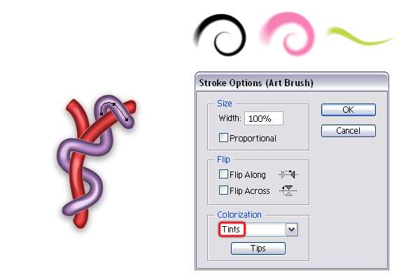 在缠结文字效果中使用过白色有角混合艺术画笔给文字添加高光。不要忘记, 你可以在任何时候将着色色调设置为淡色,就这样改变描边颜色来得到一个多彩的画笔。你也可以减少描边粗细,得到一个更为尖利的画笔,或者加粗描边让它看起来更柔和。