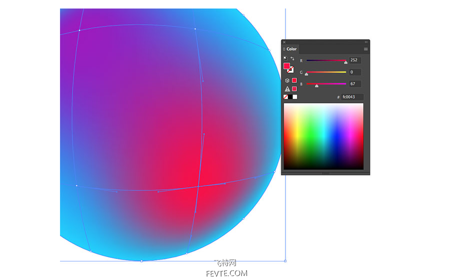 再次添加网格渐变,位置如下,修改颜色为#FC0043