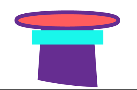 我们可以利用绘制大炮口同样的方法来绘制帽子口。 新建一个103x13px的椭圆,然后应用路径偏移设置4px的位移。在取矩形工具画一个54x57px的形状,应用紫色。然后与帽子口对齐适当位置。