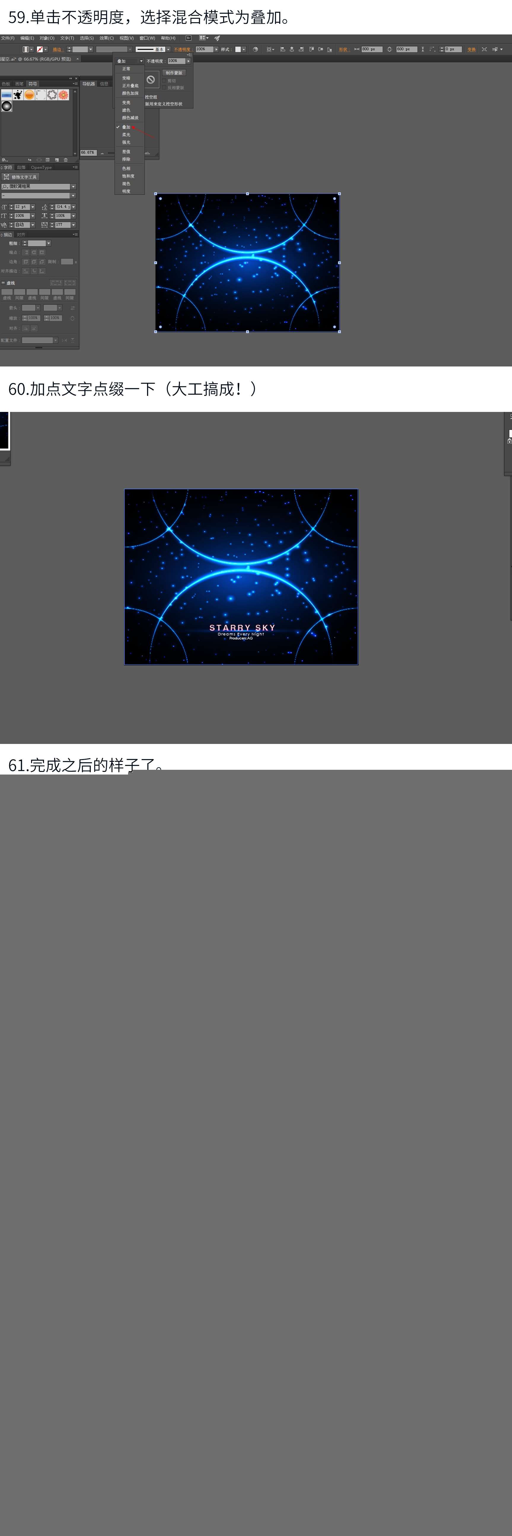 说到制作星空,很多人第一想到的是使用PS的笔刷来制作,其实AI来制作星光效果也很方便,同时最大的优势就是使用AI制作的话,还可以制作成矢量的,以后的运用会更加的方便,推荐过来和优图宝的朋友们一起分享,一起学习了,我们先来看看最终的效果图吧: