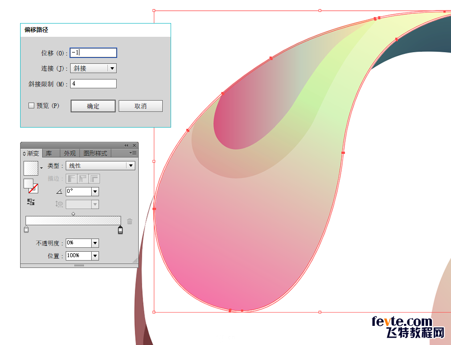 选择上一层的形状,进入【对象>路径>偏移路径】,在弹出的面板中设置位移为20px,这个参数可以根据实际需求进行调整。