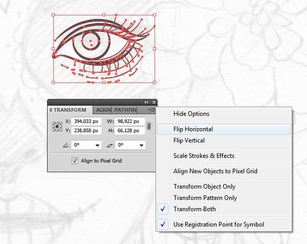使用选择工具选中刚画好的眼睛,Control-C 然后Control-F复制出右眼。