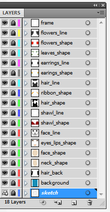 下面开始勾勒头发。在脸部和耳环两个图层中间创建一个新图层。
