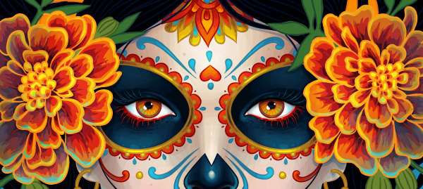 把花瓣的边缘涂上橘黄色,下睫毛涂上红色。