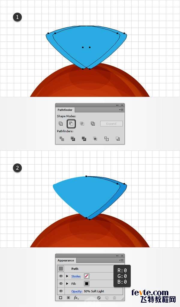 重新选中两个图层副本,打开路径查找器(窗口路径查找器),点击减去顶层。