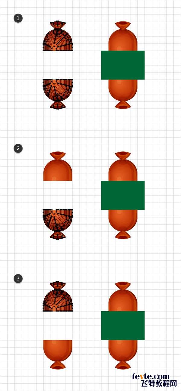 取消对齐网格。重新选中绿色矩形并复制两份(Control-CControl-FControl-F)。