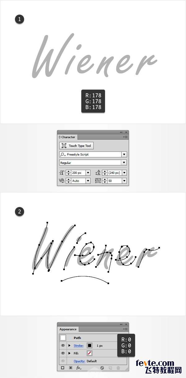 选中文字路径,修改描边为我们新建的"Wiener Brush"笔刷。